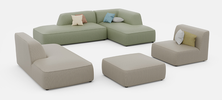 Our modular soft seating, available in a wide choice of shapes and fabrics, can be configured for any size of workspace design project.